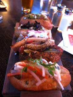 Municipal Bar & Dining Company, which had spicy sausage at the center of its beef burger and came topped with Manchego cheese, tomato, and crispy onions. This burger had a rather nice kick from both the chorizo and the chipotle aioli, but Brandy felt the sausage was a little overwhelming, reminding one a little more of a particularly tasty taco rather than a burger.