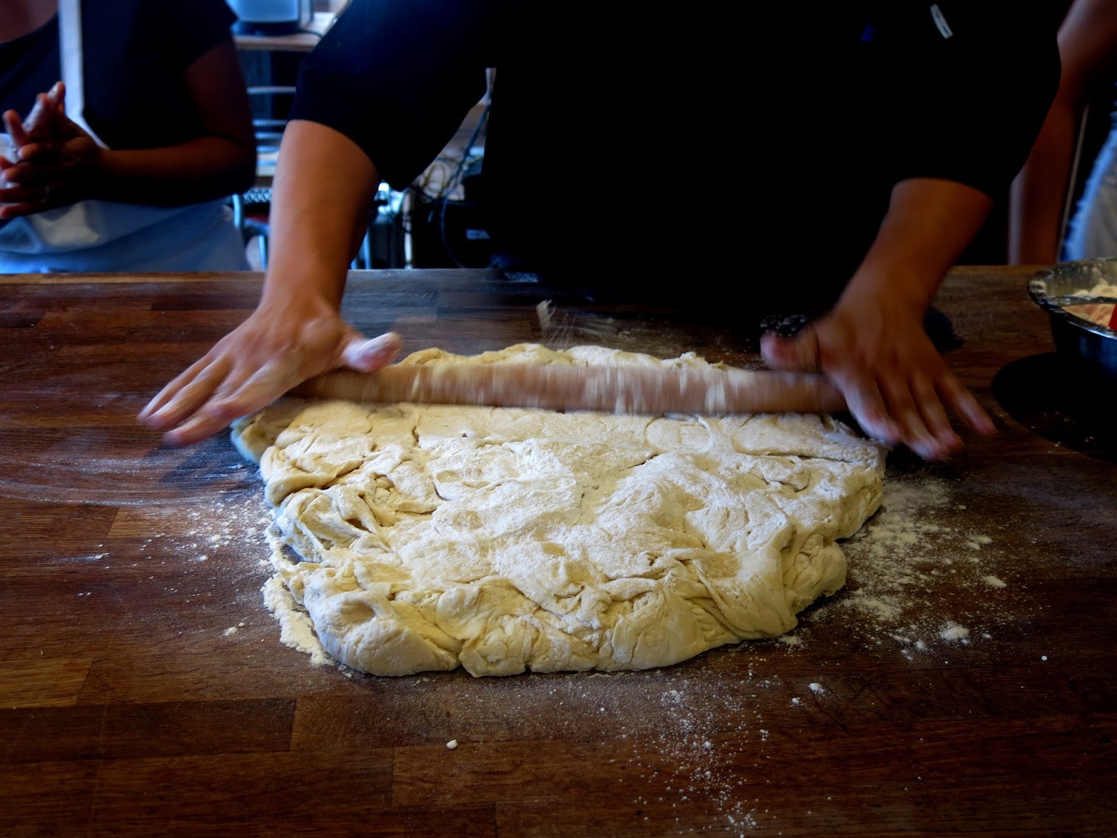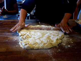 counter. "It's magic dough," he grinned at them. When pressed a little further, he cheekily asked them, "Have you heard about Cronuts?" Brandy was instantly thrown into an almost hypnotic state at the thought. The infamous Cronut, demonic hybrid of a croissant and a doughnut, thus taking an already decadent, buttery pastry and adding to it's sinfulness by frying it until golden brown. But Chef Vincent had other plans for his "magic dough." "We're going to use it instead of English Muffins in the Benedict," he said, causing Brandy to swoon into the crepe batter covered hands of her fellow classmate. Chef Vincent was then taken by an idea to cover the top of the Cronut dough in the remaining pulp from the red berry glaze before he put the mound into the oven, which was an idea the rest of the class didn't seem too sure about.