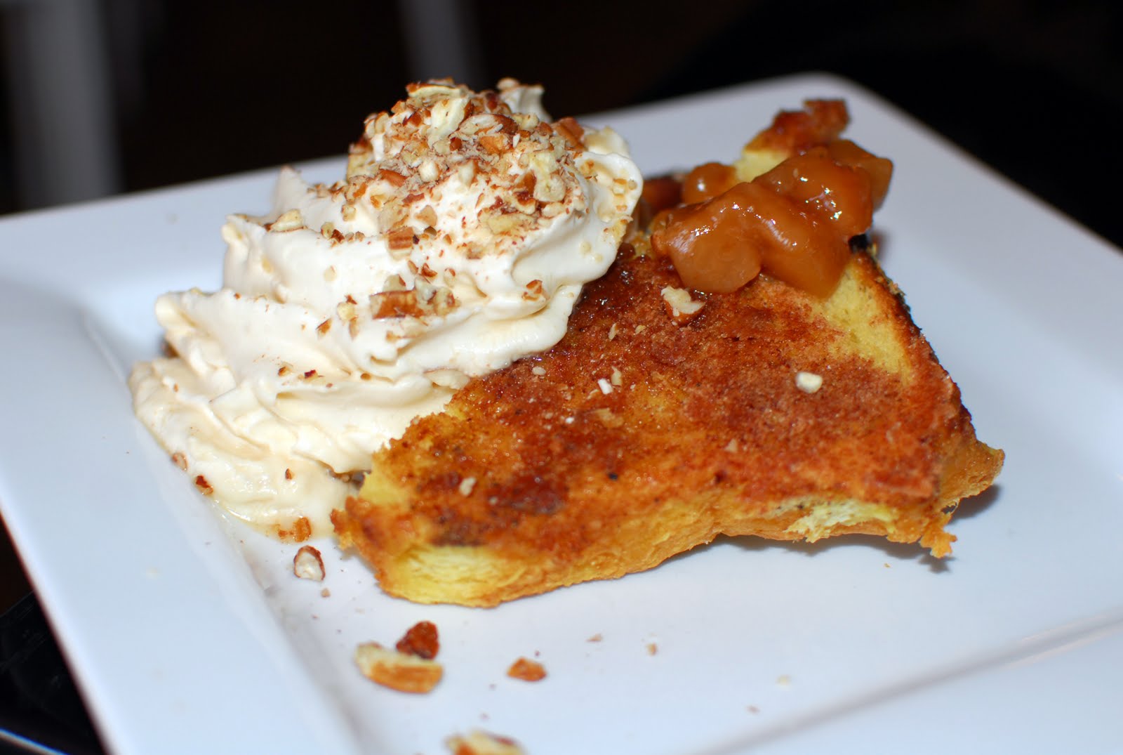 Brandy also opted for a half order of French Toast, which came with caramelized pears, pecans, and whipped cream.  The French toast had a lovely ginger flavor to it and was delightfully crunchy on the outside.  She soon wished she had splurged and ordered the full version to take home.