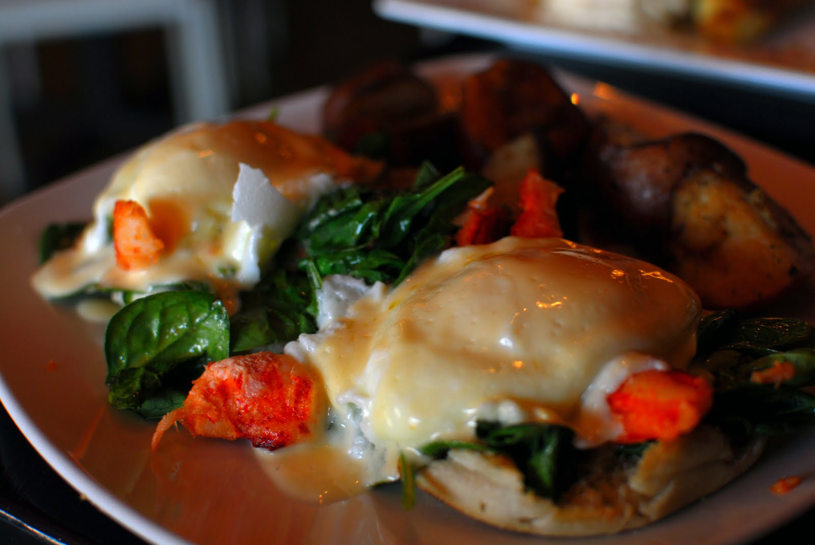 Bunny's choice for brunch was a delicious sounding Lobster Benedict, served with a white truffle hollandaise.  Bunny was delighted to see that no concession was made for the dish, which came with great hunks of lobster meat over wilted spinach, all of which tasted fresh and bright.  The eggs were perfectly poached and the hollandaise too was outstanding with that savory quality of the truffle coming out with every bite, making one's mouth water for the next bite before you could even finish chewing.  The dish was served with some lovely roasted potatoes on the side, which had just enough flavor to convince Our Ladies that they had not just been thrown onto the plate to fill space.  It is very sad to report that although this dish was exquisite, Bunny found a rather large egg shell sitting on top of one of the benedicts.  The very kind server offered to take the dish off her bill or replace it as soon as the atrocity was discovered.