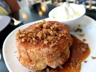 Backtracking towards the center of the circle, Brandy stopped into Brunch for one of their Banana Bread French Toast bites, which came drizzled with a rum based Bananas Foster sauce, and a tiny yet adorable carafe of mango and ginger sangria.