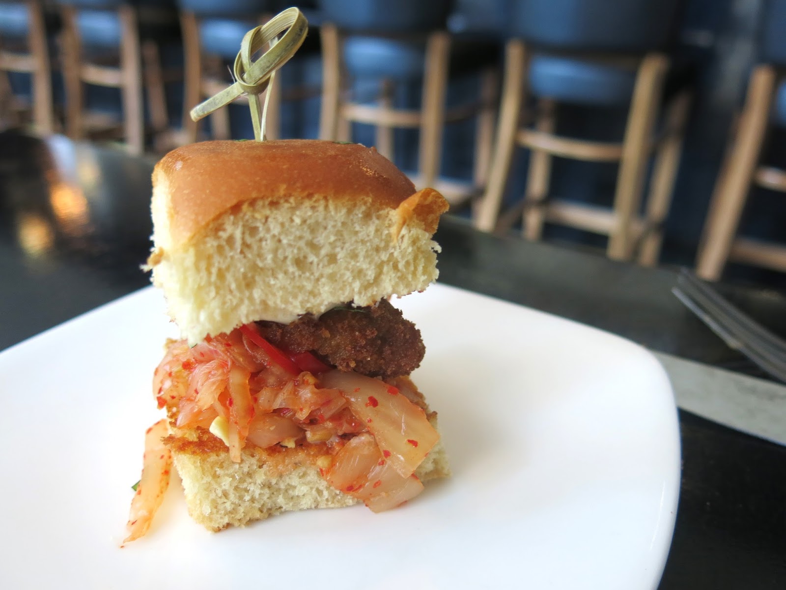 "The place has 'oyster' in the name for goodness sake!" Brandy sighed, but Mama Bee would not budge in her resolution to not let any seafood pass her lips, so Brandy ordered up an Oyster Po Boy Slider for herself. The little sandwich was a perfect mix of textures and flavors, with a soft bun, bright and sour kimchi, and a single crunchy fried oyster in the middle. "Normally I take my oysters raw, but this is rather delightful!" Brandy exclaimed, and for a moment, Mama Bee seemed to be regretting her decision.