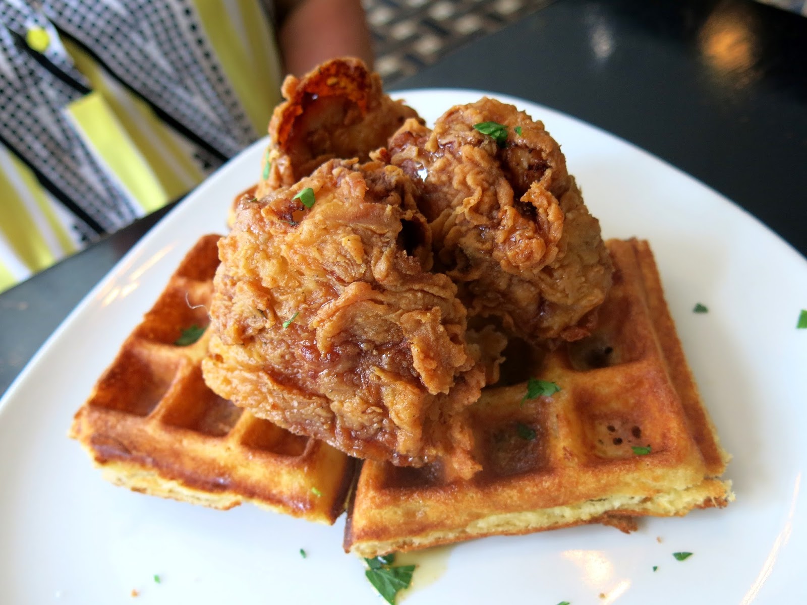 Mama Bee had chosen the Fried Chicken and Waffles as her entree, not only because it wasn't seafood, but also because it came served with Burton's Maplewood Farms maple syrup, a product she had become addicted to thanks to Brandy. "If I can't have it with honey, this is the next best thing," she grinned. The chicken had been perfectly cooked and coated in a nicely light and crunchy batter, but Mama Bee really took a shine to the waffles, which were excellently caramelized on the outside, and light and chewy on the inside with a nice malty flavor. "I only have one complaint," Mama Bee said. "Let me guess. Not enough syrup?" Brandy replied. "You know me too well," Mama Bee grinned.