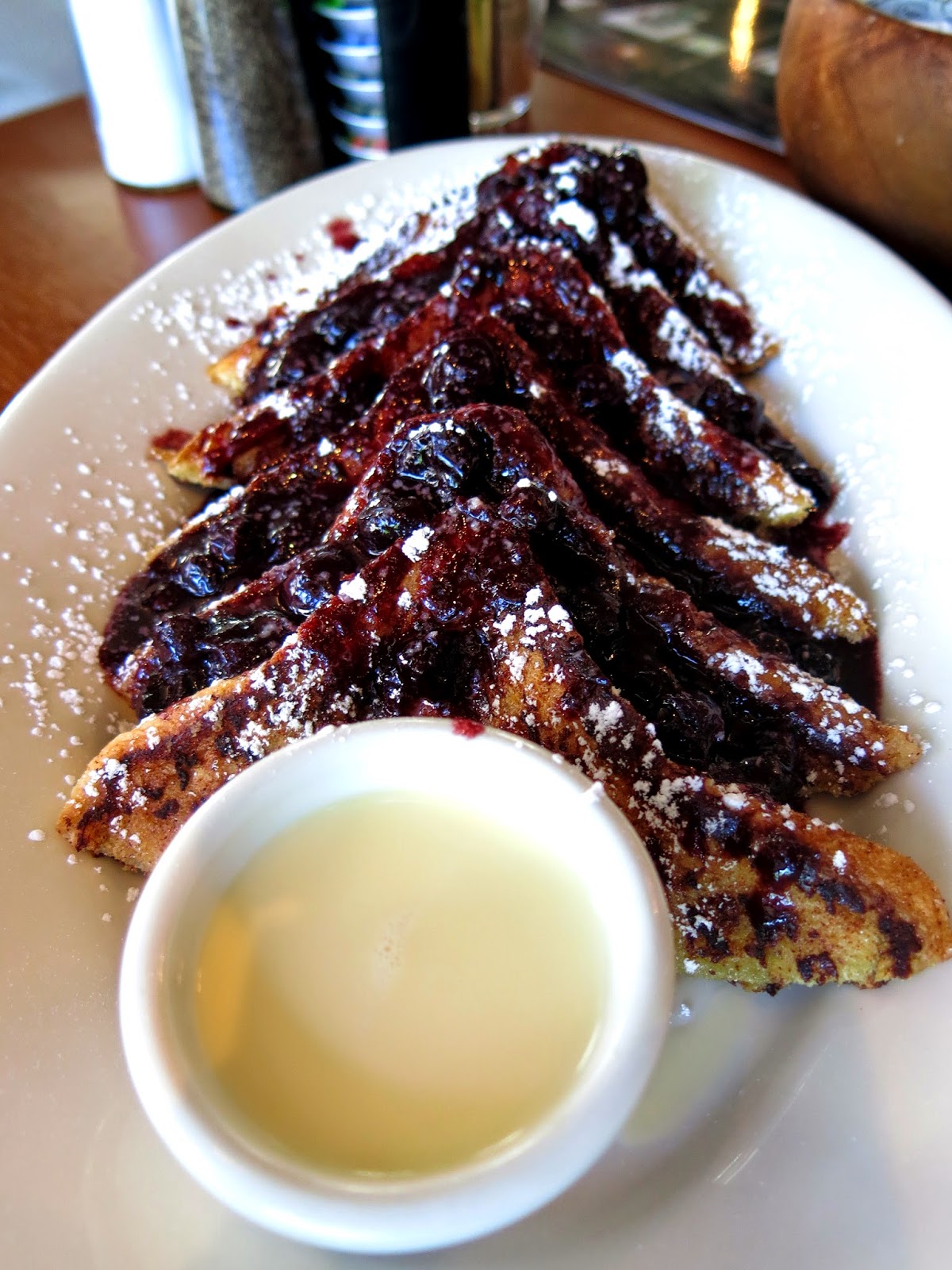 Lastly for a little sweetness, Brandy ordered the Cinnamon Blueberry French Toast. As we all know, Brandy is pretty picky about her French toast, even turning her nose up at concoctions made by some of the most highly regarded restaurants in Chicago, but this French toast was absolutely perfect. The bread was eggy and soft, but still maintained a little firmness, the coating had a great warm cinnamon flavor, and the blueberries on top added a little pop of tartness. She was especially glad to see a side of vanilla syrup for dipping, which she remembered as one of her favorite things about her last meal at Hashbrowns.