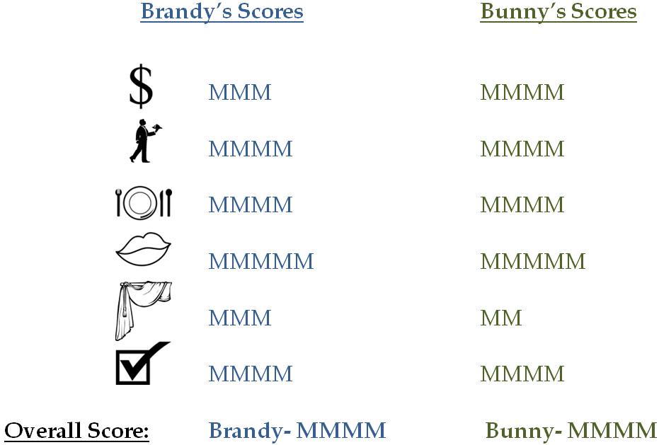 Biscuit chose the Lorraine Scramble, with Gruyere cheese, bacon, scallions, and of course, scrambled eggs. Perfectly mimicking the flavors of a Quiche Lorraine, the concoction was light, fluffy, and very flavorful. The potatoes on the side were quite good, though Mama Bee and Brandy thought they were a tad too herby.