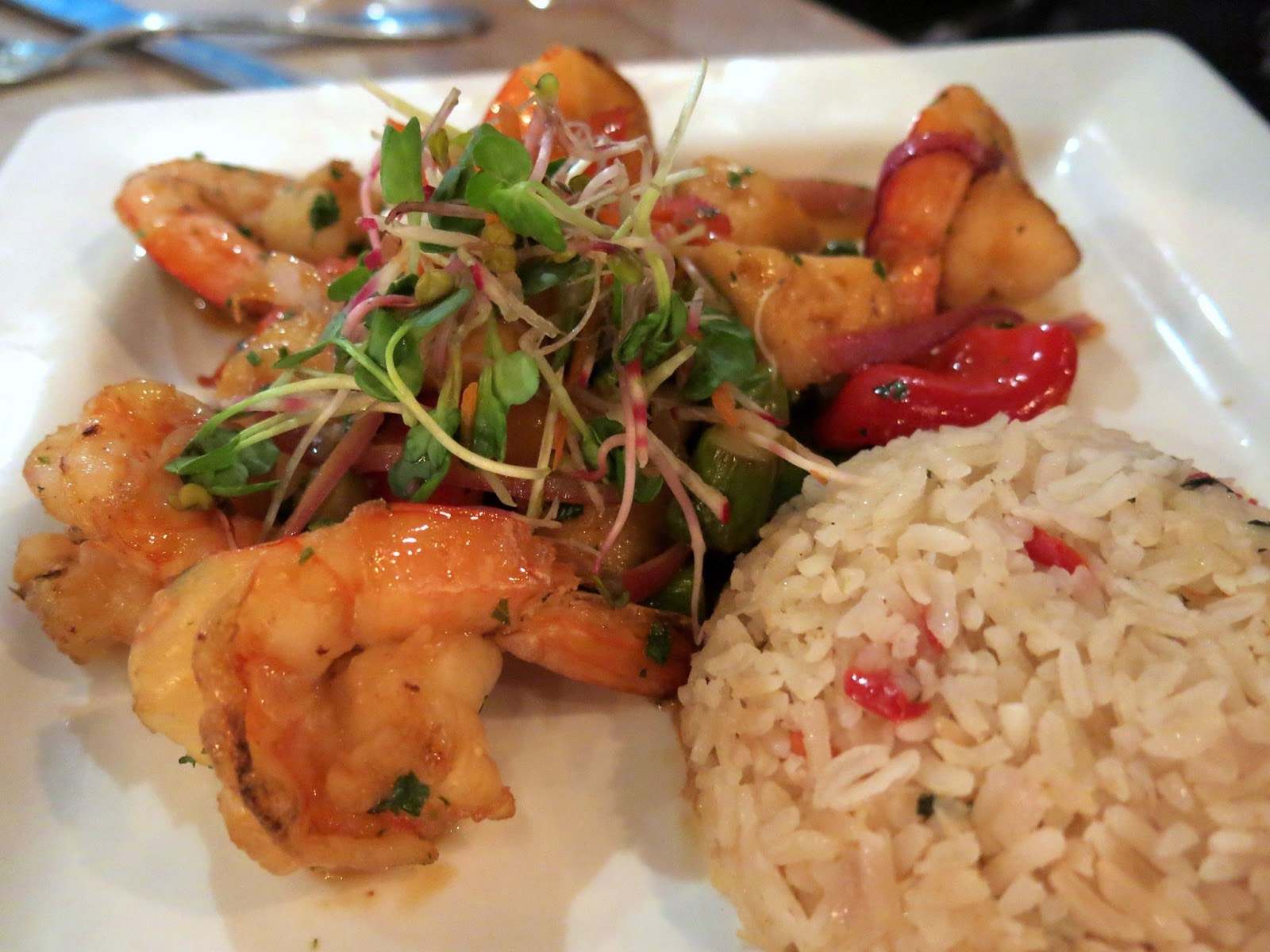 Moving on to entrees, they again obeyed the rule of three. Wishing to see if the tacos in Northbrook measured up to the high standards of Chicago's booming taco scene, they first sampled the Pescado, or fish tacos, made with pan seared grouper and topped with pineapple relish, cabbage, avocado, and a caper ailoi. The fish was wonderfully flaky and added to the party of textures in the tacos, from the crunchy cabbage, the juicy relish, and the smooth avocado. "I always think the true judge of a good taco place is their fish taco," said Bunny, "And this one certainly passes that test!" Next, they moved on to the Flautes De Pollo, a different style of taco made with chicken, potato, cabbage, avocado, and dressed with plum sauce and creme fraiche. The flautes had a crispy texture and an over all smokey flavor, making this a more substantial and bold dish than the fresher and lighter fish tacos (a good counter part, Bunny thought). Lastly, they tried the Camarones Tropical, a shrimp dish made with pineapple, blood orange juice, asparagus, and jasmine rice. Bunny enjoyed the bright and citrusy flavor of the shrimp, which almost resembled a Chinese style sweet and sour sauce, and actually wished that the sauce had permeated the shrimp a little more.Finally, Starr and Bunny decided to share a Lava Cake for dessert. This decadent chocolate cake came topped with macerated cherries and a scoop of vanilla ice cream, adding even more richness to an already sinful plate. The cherries actually helped to even out the dense chocolate cake quite nicely with a dose of tartness, giving it a sophisticated finish.