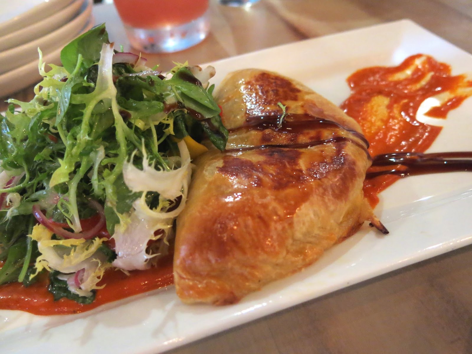 For their appetizers, Bunny and Starr ordered a trio of dishes to share, abiding by the old tea time rule of one for each and one for the table. First up was the Calamari Frito, served with an intriguing mango sweet chili sauce. The calamari was perfectly fried so as to be tender and not too chewy, but the sweet, tangy, spicy sauce is what really made the dish truly unique. Next up, they sampled the Quesadilla De Huitlacoche, made with black bean relish, melty cheese, Mexican herbs, and a huitlacoche, a type of mushroom that grows on corn and has a flavor that resembled truffles. Bunny and Starr found the quesadilla very earthy with an unexpectedly bitter note that wasn't entirely unwelcome. The texture was crunchy and gooey all at the same time, as a good quesadilla should be, but still light and fresh. Lastly, they split an Empanada, which was filled with leeks, artichoke hearts, cream cheese, and lobster. The casing of the empanada was doughy and buttery, while the interior was creamy, decadent, and very flavorful. Bunny was happy to see that this dish came served with a side of greens, which helped to brighten up the otherwise very rich empanada filling.