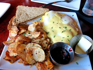 For her entree, Bailey chose the Brunch Schnitzel. The massive slab of breaded pork came topped with a fried egg and a healthy portion of smoked potatoes and pickled red onion. She was very happy with how juicy the pork was on the inside as well as the well flavored potatoes and onions, which stood up to the meat quite well. "I'd say that I could eat this every day, but if I did, I'd be as big as one of those line backers," she giggled, mostly to herself, as Brandy was enraptured by a play happening in the baseball game she was keeping an eye on.