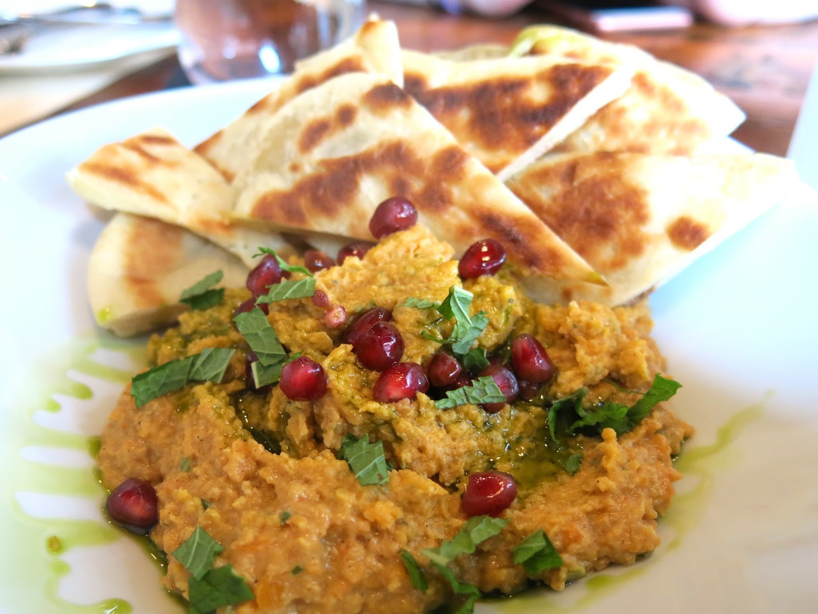 To start off their meal, the ladies were presented with a plate of Roasted Squash Hummus, which had been drizzled with some mint oil and topped with pomegranate seeds. The result was a lovely combination of fresh, sweet, and earthy flavors with a nice bit of texture from the bits of roasted squash. They both enjoyed the warm naan bread served with the hummus, so much that they had to request a second round of it so as to keep shoveling the golden orange spread into their mouths.