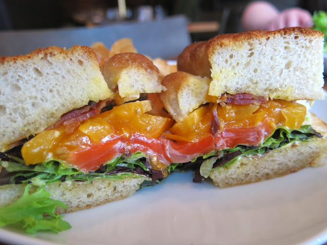 Following that, a couple of entrees made their way to the table in the form of a Prosciutto Benedict and a Smoked Trout BLT. Brandy just adored everything about the Benedict, from the chive infused hollandaise to the delicate salt flavor from the prosciutto, to the sprinkle of crisped shallots on top of the perfectly poached eggs. "This is simply divine and unique, yet has all the hallmarks of a classic benedict," said Brandy, "It's a rare day that I become this excited by a hollandaise any more!" Starr favored the trout BLT, which had a thick slice of delicately smoked fish that went toe to toe with the bacon, meaning neither one completely overwhelmed the palate. The house made items were some of the best things about the plate, from the focaccia style bread that was tender and soft but held together well, to the side of potato chips that were so light and crisp that Brandy couldn't stop stealing them from off the plate.