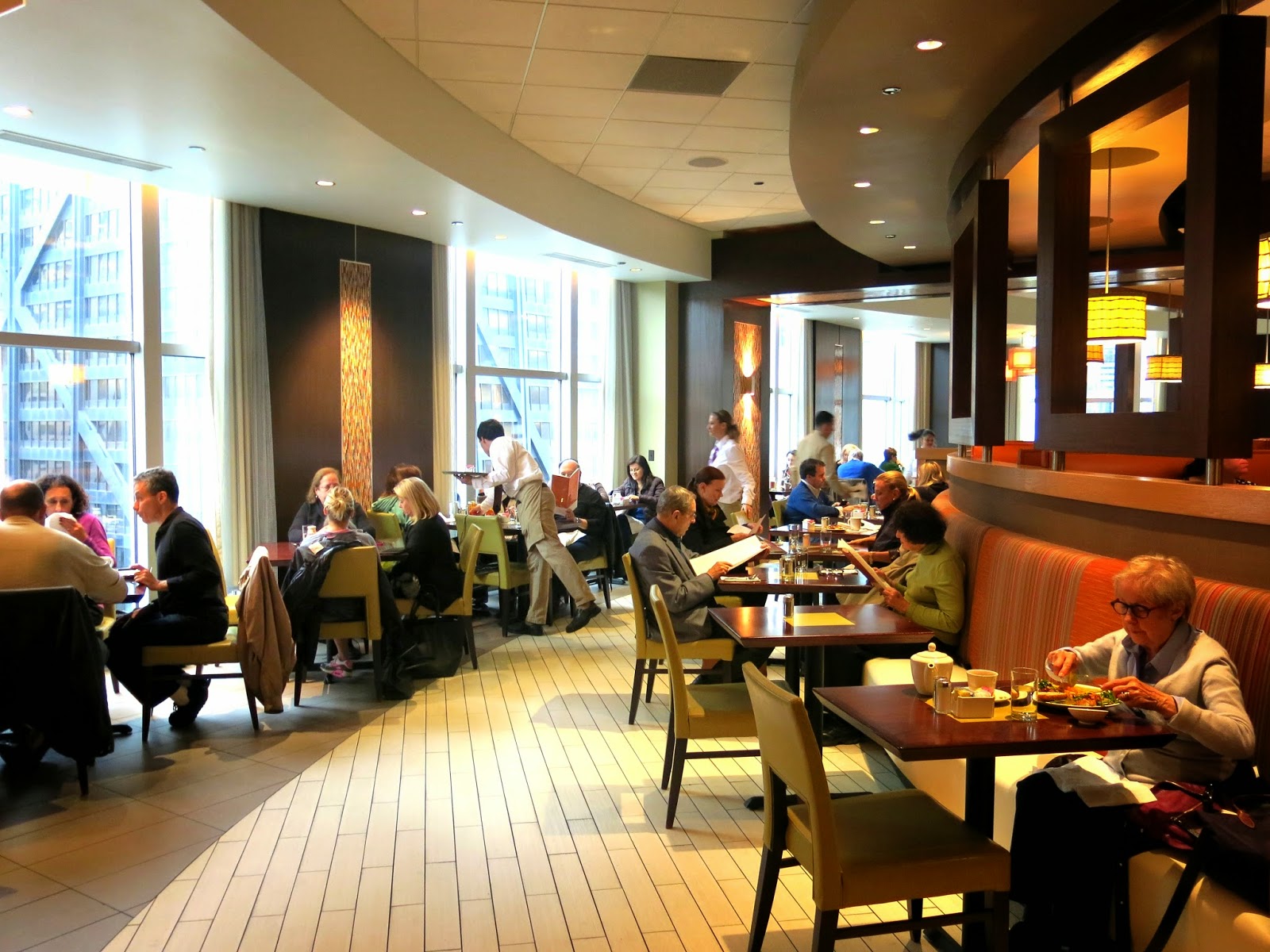 Oak Tree had a charming swooping dining area with lots of bright colors and a full wall of windows that showcased the beautiful view of Michigan Avenue below. Brandy had no issue being seated right away, even though the restaurant seemed to fairly busy. She noticed that the servers were dressed in rather stuffy, old fashioned uniforms; white long sleeved shirts, khaki pants, and ties. "I would think such a casual eatery that only serves breakfast and lunch would be a bit more relaxed on their employees' dress," Brandy said. Soon after being seated, she was approached by a tall, soft spoken young man who, while friendly enough, seemed to be in a bit of a hurry to collect her order.