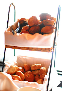 The first thing that struck them was that there weren't very many choices. Bacon and sausage, pancakes and potatoes, scrambled eggs, a fruit plate, some lox, and a selection of muffins and bagels were the major part of the dishes available for consumption. There was also a station for making one's own omelet (or rather, pointing awkwardly at ingredients for the chef behind the table to form into an omelet for you). All three ladies agreed the addition of some sort of salad, some french toast, and one or two other hot items would have helped round off the buffet selections.