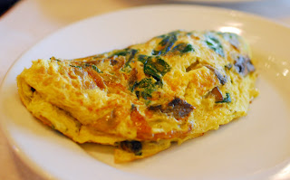 Brandy was the only one who opted to create an omelet, which she did with caramelized onions, spinach, mushrooms, and mozzarella cheese. The result was pleasantly fluffy, though Brandy did wish fresh spinach had been used rather than pre-cooked.