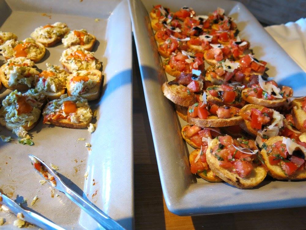 In the cold foods section, Brandy was again surprised to see more than just a few salads on offer.  A pair of fresh bruschettas, one topped with tomato and the other with artichoke, lead the way, then came the Caesar and Market salads, pasta salad, and even fresh seafood with peel and eat shrimp and smoked salmon.  The sweeter side of the cold foods featured some pretty standard looking bagels and muffins, but also a rather enticing yogurt parfait with fresh strawberries and coconut granola.