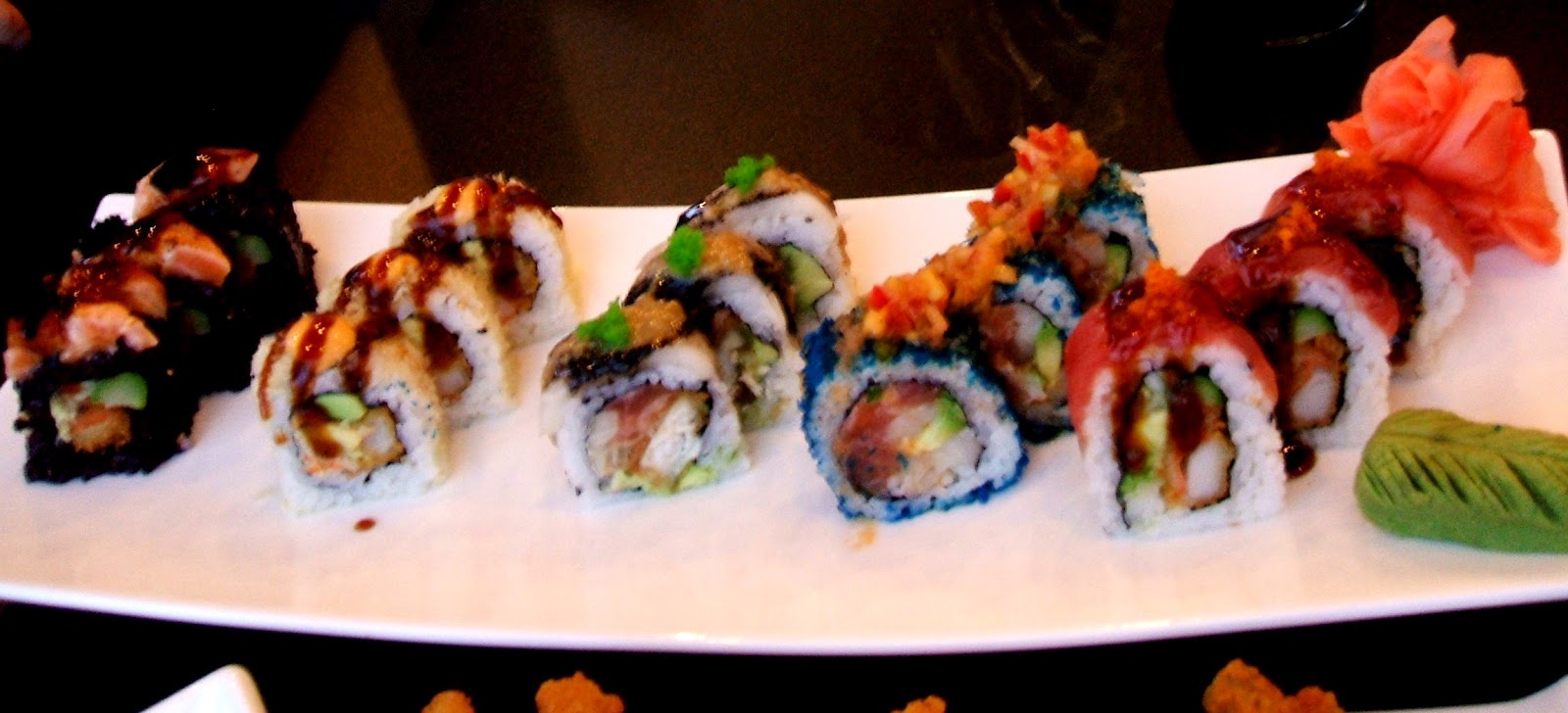 A plate was then brought to the table, boasting the best of the best appetizers on the menu, including a selection of sashimi and nagiri and some more adventurous rice based bites like the Nasu Tempura (which consisted of eggplant, spicy salmon, and mango salsa) or the Crunchy Shrimp (with faux shrimp, spicy tuna, and a sauce made from bell peppers). "I can't believe its not shrimp!" Hawke exclaimed when Brandy reminded him of the culinary trickery in the tidbit, both of them fumbling a little bit with their chopsticks and desecrating the lovely food in the process. The favorite of the group was most certainly the Crispy Rice, which came topped with salmon and pineapple salsa. "Crispy rice indeed!" Brandy proclaimed happily, "I'd take this over those saccharin marshmallow things any day!" The slices of fish they had been provided with were incredibly tender, practically melting on the tongue. Brandy liked tasting the subtle differences in the preparation and type of fish from bite to bite, favoring the white tuna out of the bunch.