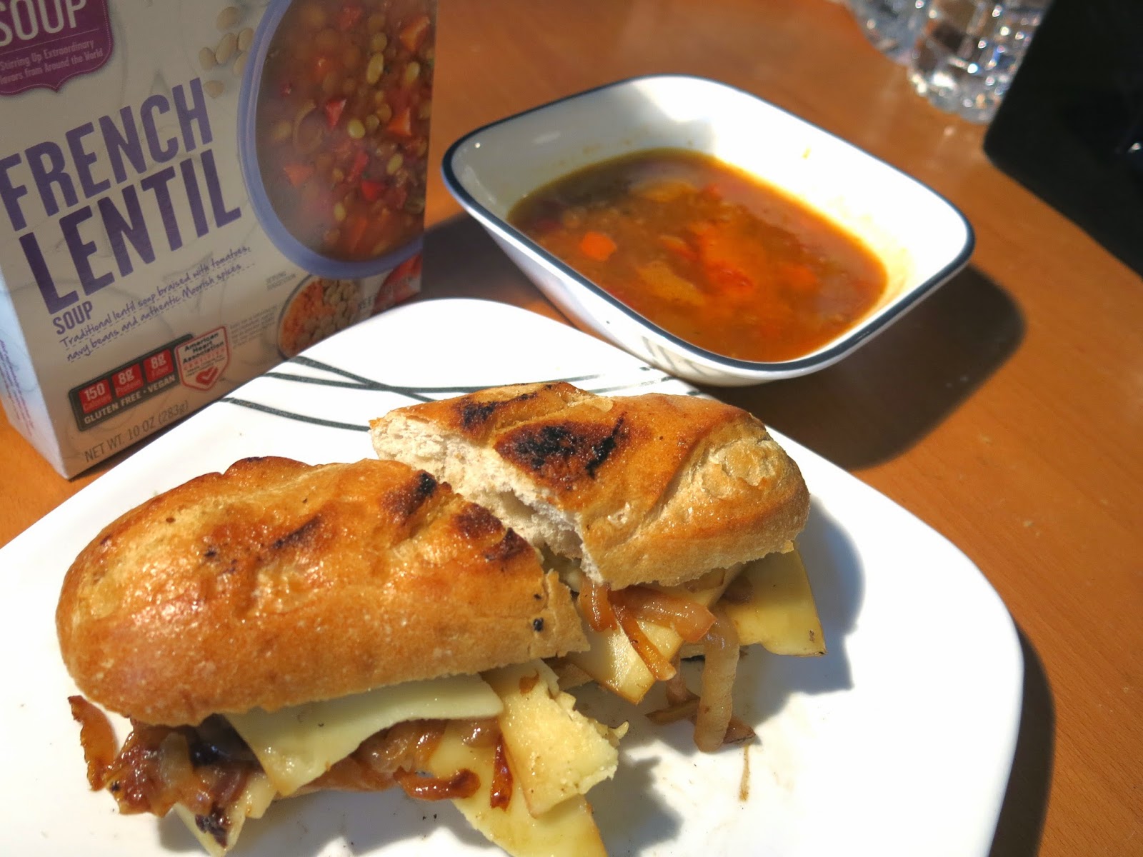 Another soup with a bold tomato based broth, this one, Brandy though, could use some sweetness to balance out the hearty lentils, so she paired this soup with a gruyere cheese and caramelized onions on a classic French baguette.