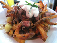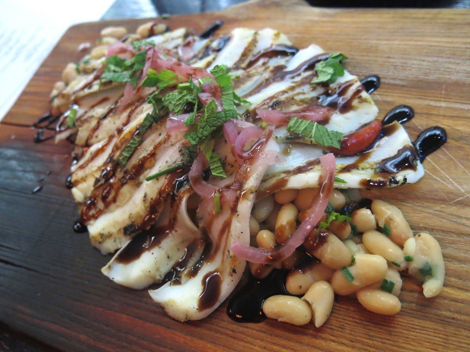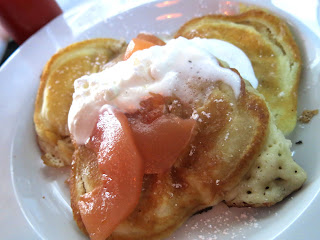 Transitioning to a sweet dish, Brandy ordered a plate of Johnny Cakes, a cornmeal based pancake served with pickled cantaloupe and brandy infused whipped cream ("I think I should get a cut of the sales for anything with brandy whipped cream on it!" Brandy giggled to herself). The cakes had a nice fluffy texture, matched by a crisp underside that maybe bordered on being burnt, but Brandy liked them all the same. The real pleasure in the dish was the pickled cantaloupe, which lent an unusual sweet and sour flavor that more resembled a peach or an apricot. "It is hard for me to say I would eat an entire plate of pancakes myself," said Brandy, "But this may be one of the exceptions to the rule."