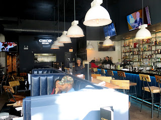 Chop had a hip, modern feel to it with a black, industrial interior and stylishly rustic bar, fronted by a large light up sign. The restaurant seemed a little dark for brunch, but the large booths were comfortable and the atmosphere buzzing, but relaxed.