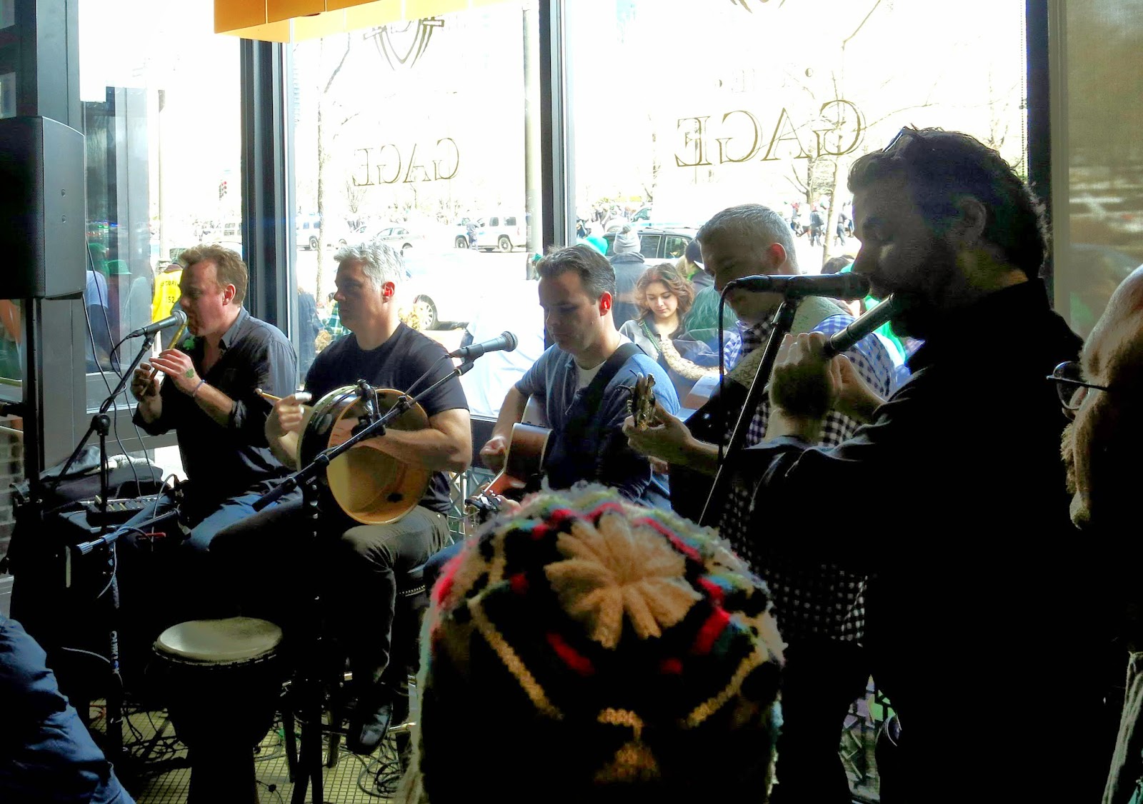 After rising (just barely) from their table and heading for the door, Bailey and Brandy found themselves so in the spirit of the holiday that the green clad rabble at the front bar no longer seemed like advisories to be avoided, but jovial chums to be joined. It may have been the amazingly efficient and friendly service (an accomplishment worth noting, as St. Patrick's Day is one of the busiest days of the year at The Gage), it may have been the clean hearty flavors of the food, or it may have been the massive amount of booze they'd ingested, but the pair simply couldn't bare to leave the delightful atmosphere of The Gage, so with a mighty yell of "Slainte!" from Brandy, they settled down in front of the the fiddlers and danced the afternoon away.