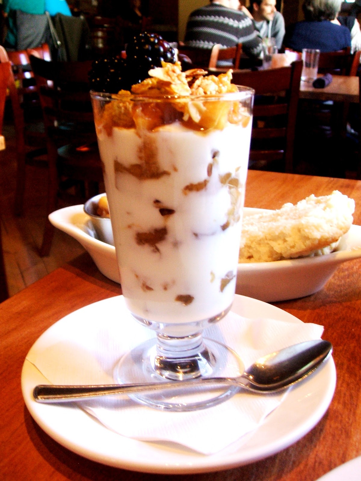 To start off her brunch, Brandy ordered a Yogurt Parfait made with house made granola and seasonal fruit, which in this case turned out to be apple compote and a few fresh blackberries. The granola provided a nice crunch without being too hard and the apples were soft and sweet.