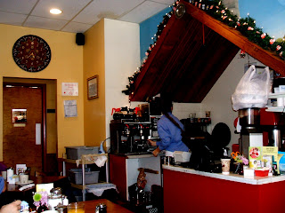 Brandy and friend decided to start with a fresh baked pastry; a Vanilla Hazelnut Danish. It took some convincing for Babka to even consider ordering anything that wasn't a carrot stick, but once the confection was placed in front of them, there was no stopping her fork. The pastry was flaky and warm with a filling that more resembled custard than the traditional cheese. Brandy wished for a bit more hazelnut flavor, as the only hints came from small slivers of nut atop the custard.