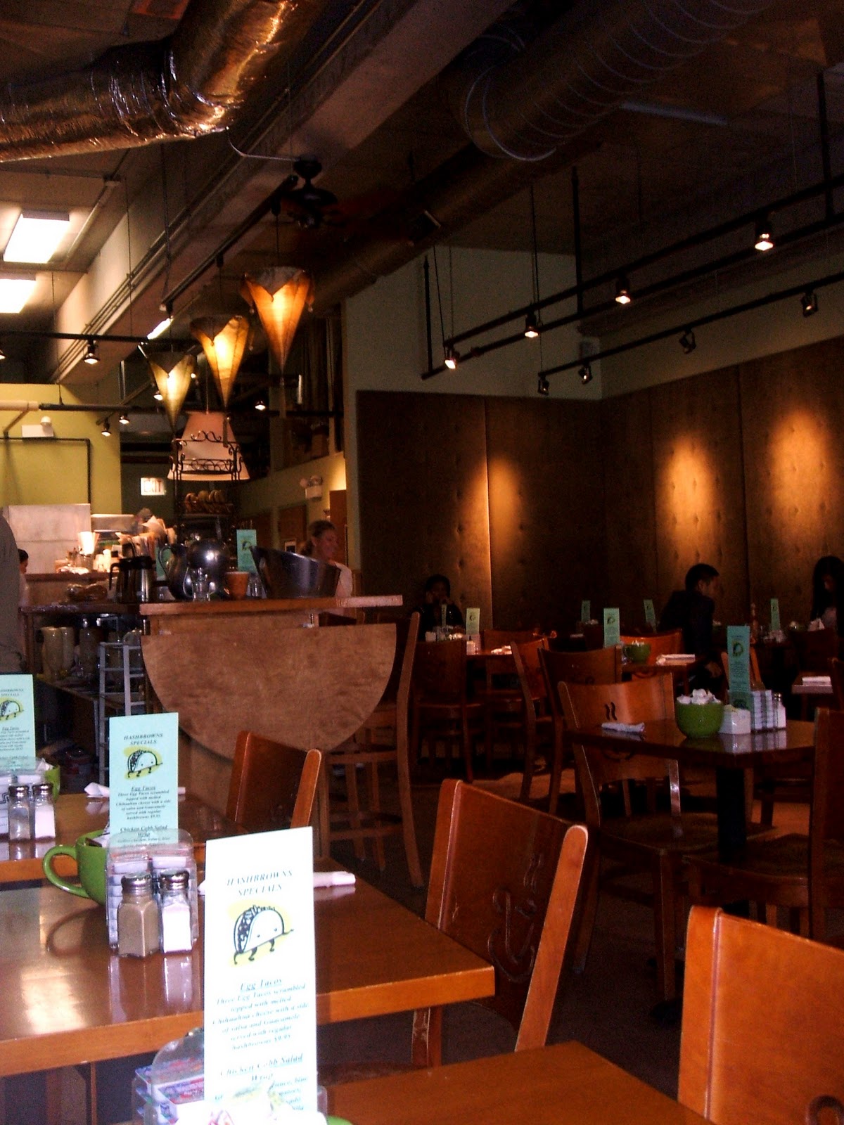Except one thing, and that one thing was what drew her to Hashbrowns, perennial attendee of the Chicago Taste Festival and favorite amongst students at nearby UIC. The first thing that struck her upon walking in the door of Hashbrowns was the extraordinary smell; something sort of cinnamony and meaty and comforting. She was greeted by a smiling server like she was a regular of the establishment (and indeed Brandy heard this very server greet all her tables like this, even knowing people's orders before they could tell her what they desired). The decor was a little more modern than Brandy expected, and perhaps a little bare and industrial looking, but with nice homey touches.