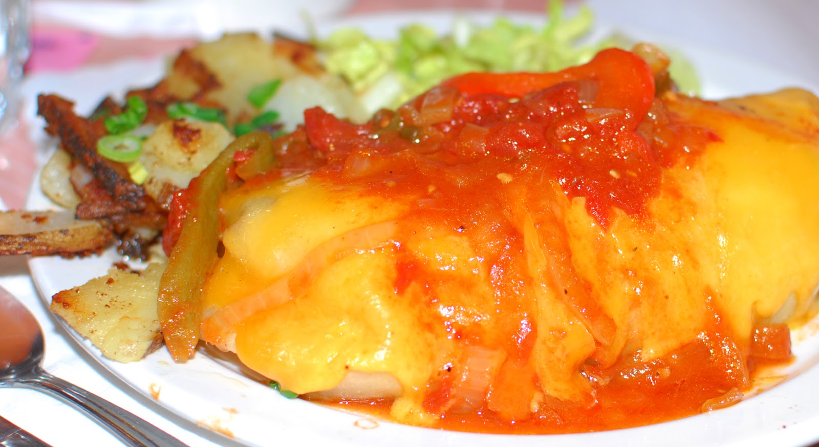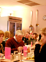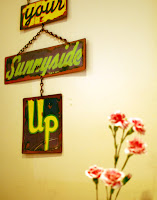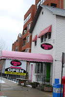 So the following morning, off they went, along with Brandy of course, to the West Side's own Breakfast Club, a quaint pink palace, hidden among row houses in an industrial neighborhood. The interior of the Breakfast Club was cute and kitchy, complete with giant eating utensils on the wall, a pink flamingo oddly placed in a pitcher, and servers wearing pink tops to match the wall paper. The tables were packed in tight and the vibe was surprisingly bustling, considering the quietness of the outside street. "Do you think they would give me the name of their decorator?" Bunny was heard to whisper.