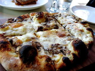 Brandy went for the Autumn Vegetable Flatbread, which was also cooked in the wood fired oven. In this case, the results were perfect. The flatbread had a nice toasty flavor from the oven and was crisp and full of texture. The cheese on top was perfectly melted and savory, but Brandy was disappointed to see that the "autumn vegetables" were simply a few mushrooms. "You would think some squash, surely, or perhaps a little eggplant," she mused, "It's very good, but they should have just labeled it 'Mushroom Flatbred' as opposed to making one expect something else."