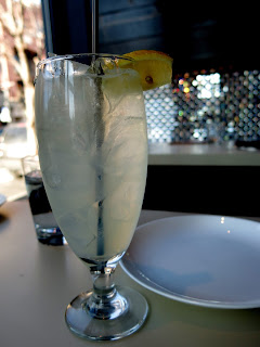 Cocktails were quickly ordered. For Brandy, a concoction called the French .75, a mix of champagne lemon, and gin which Brandy found quite refreshing, sort of like a hard lemonade. Mama Bee picked the Fuzzy Mimosa, a fusion breakfast cocktail, taking the foundation of a traditional mimosa and adding a little touch of peach bitters. "Seems to be fresh orange juice," Mama Bee observed, "It's a lovely twist, but not so far off that its unrecognizable."