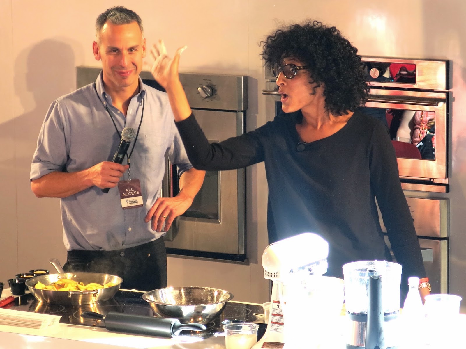 Next, Brandy jumped over the Bon Appetite Mainstage to take in a chef demo or two. She caught the very end of Iron Chef Masaharu Morimoto's demo, in which he showed off his knife skills by breaking down a gigantic fish (as well as singing) in front of the crowd. After that, Carla Hall (from Top Chef and The Chew) made a cheddar cheese and apple pie, proving to be just as quirky and lovable live as she is on television. After that came Jeff Mauro, otherwise known as The Sandwich King, whose comedy training came out while he prepared rustic Italian favorites, even inviting his son to come up and help with the dish's prep.
