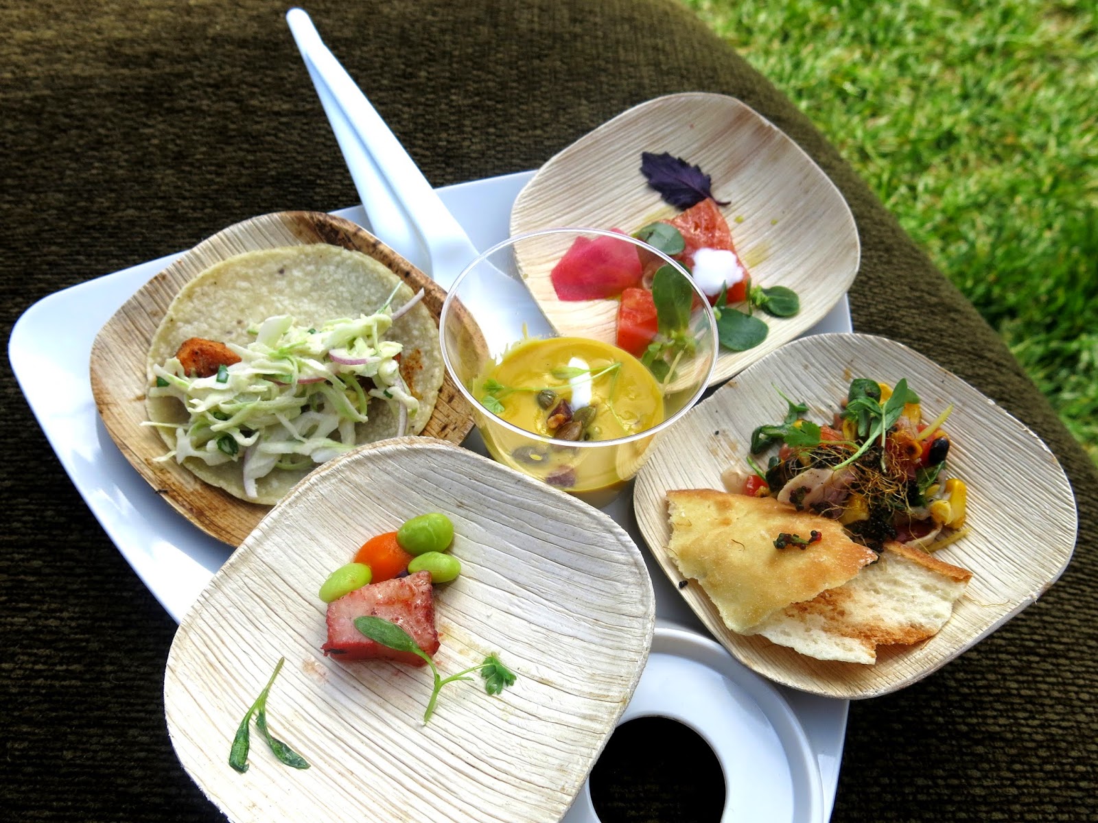 After the inaugural toast made by Mayor Rahm Emanuel, Brandy took a minute to bask in the beautiful weather before diving in head first to the tasting pavilions, gathering up as many bites as she could before the change over at 3:00. There were surprising amounts of the same sorts of things (lots of sliders, several octopus dishes, and on the sweet side at least five different kinds of donuts), but plenty of restaurants and chefs easily stood out in the crowd. Lines at the Supreme Lobster Pavilion were as long as ever, but the new BBQ Pavilion also got it's share of attention.
